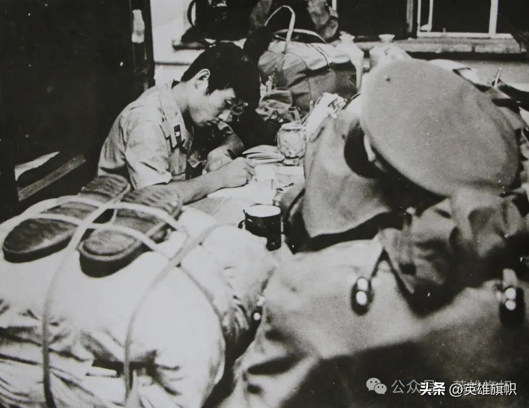 上圖:胡國橋出征前寫家信的照片