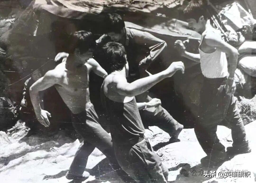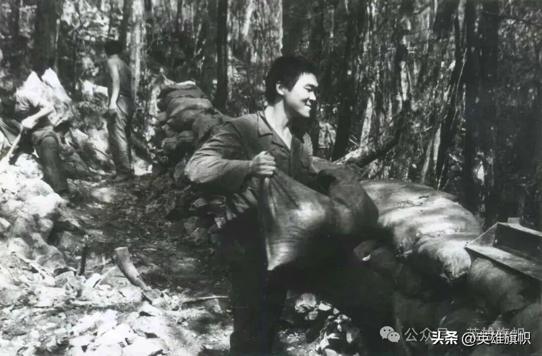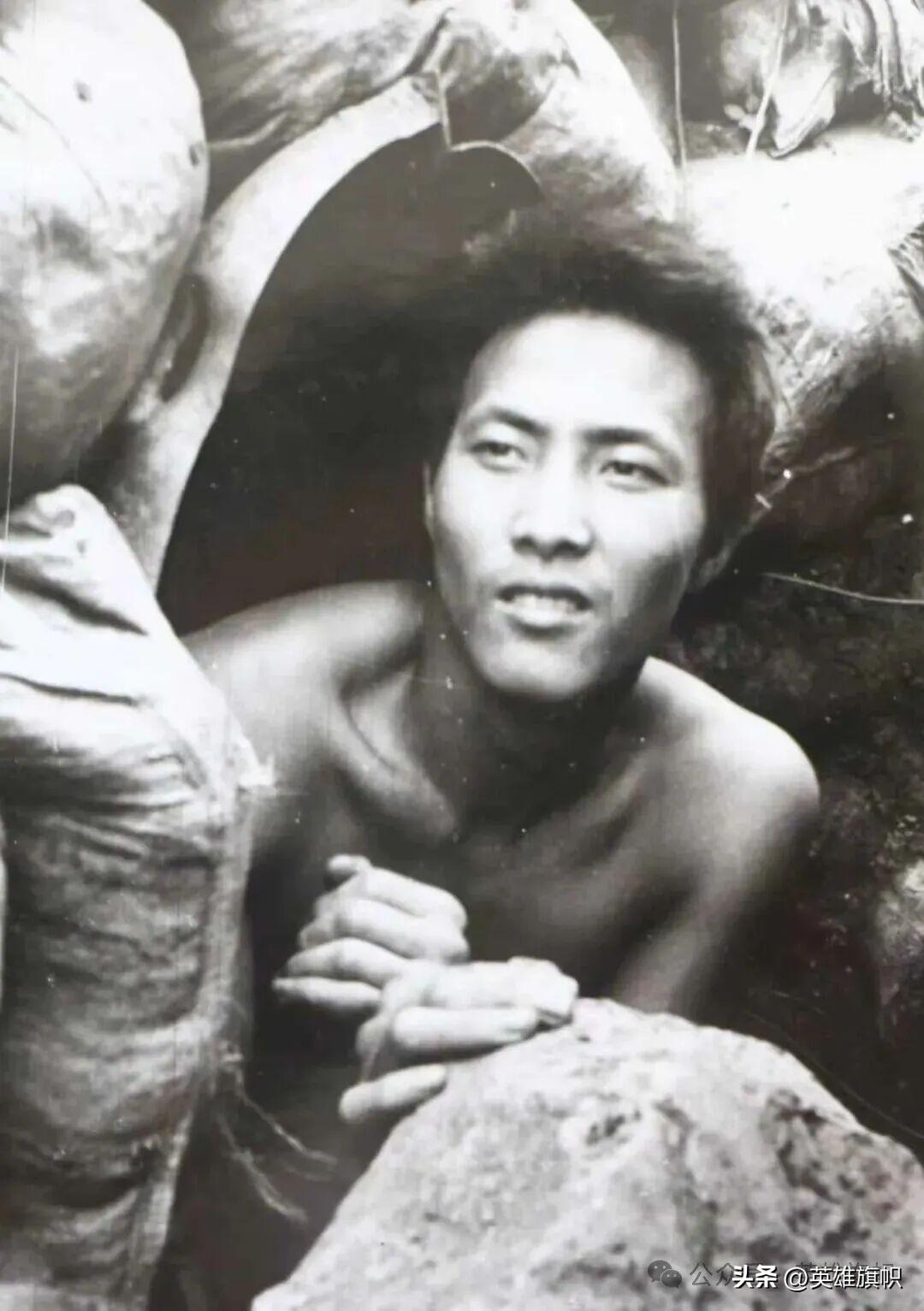 上圖:荊建平烈士在貓耳洞口的照片