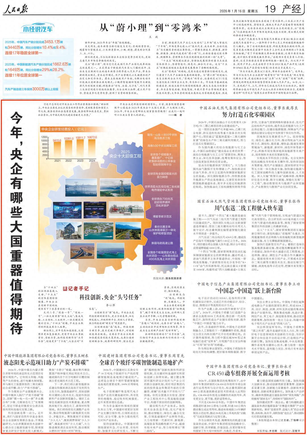 日前,國務院國資委新聞中心遴選出2025年度央企十大國之重器、十大超級工程。站在“十四五”圓滿收官、“十五五”蓬勃開局的節點上,2026年中央企業有哪些大國重器值得期待?人民日報專訪六位央企負責人,小新爲您全文分享《今年,央企有哪些大國重器值得期待》。