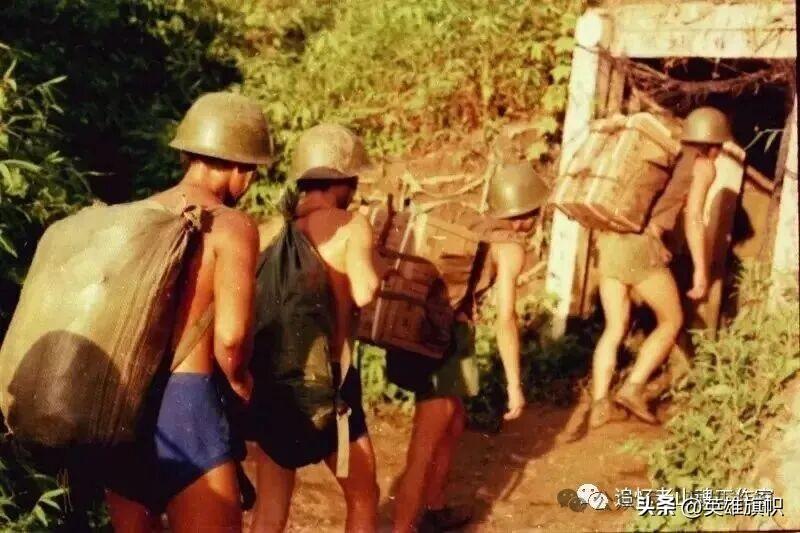 上圖:王愛新與戰友們赤身在向前沿陣地運送物資。