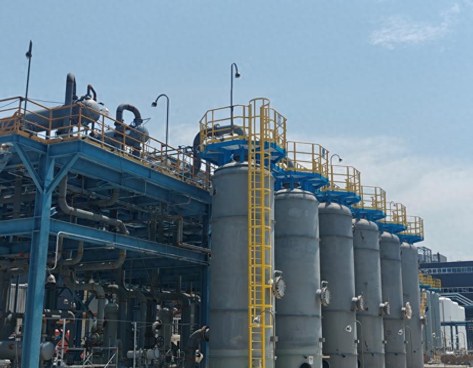 三四十米高的球形與圓柱形儲罐格外醒目,
