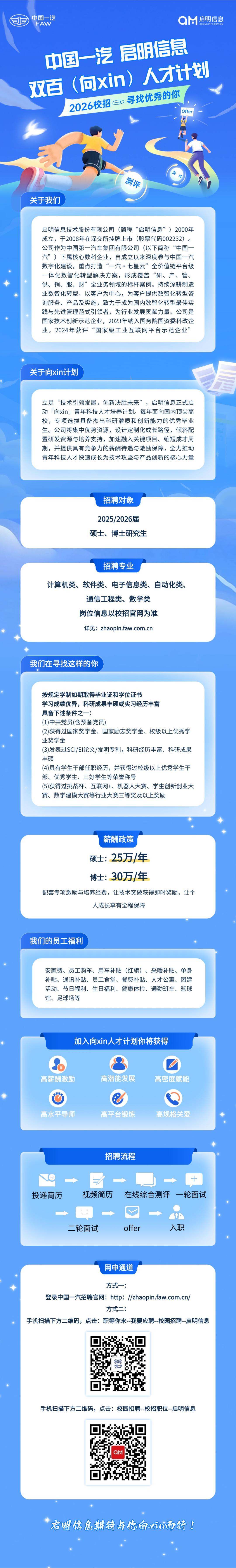 【校招】中國一汽啓明信息技術股份有限公司招聘公告