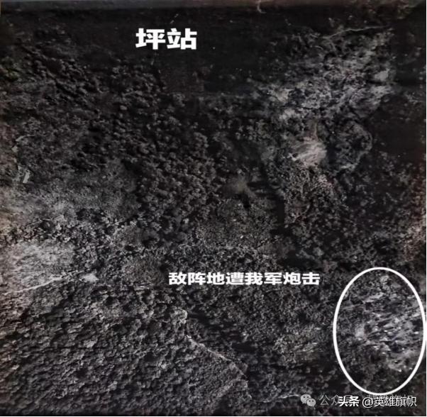 上圖:黃泥壩敵55號陣地遭打擊後的航片