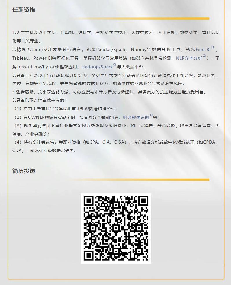 【社招】華潤集團審計部崗位招聘