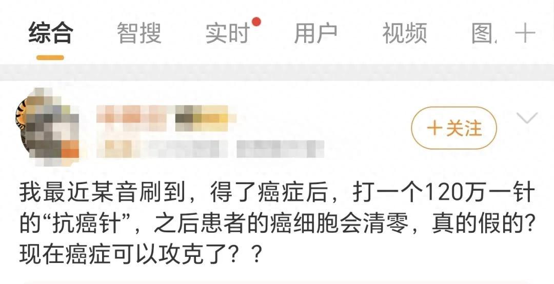 #抗癌針 話題登上熱搜,據說120萬元一針的“抗癌針”,打完一針癌細胞就會清零,癌症攻克了?