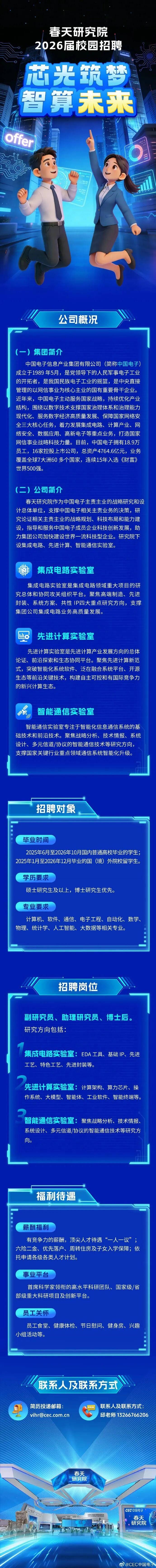 【校招】中國電子春天研究院2026屆校園招聘正式啓動