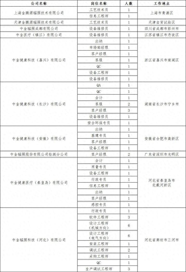 簡歷請投遞到微信服務號“中國黃金招聘”-“社會招聘”或“校園招聘”-“招聘公司”-“中金輻照股份有限公司”(含所屬企業)相關崗位