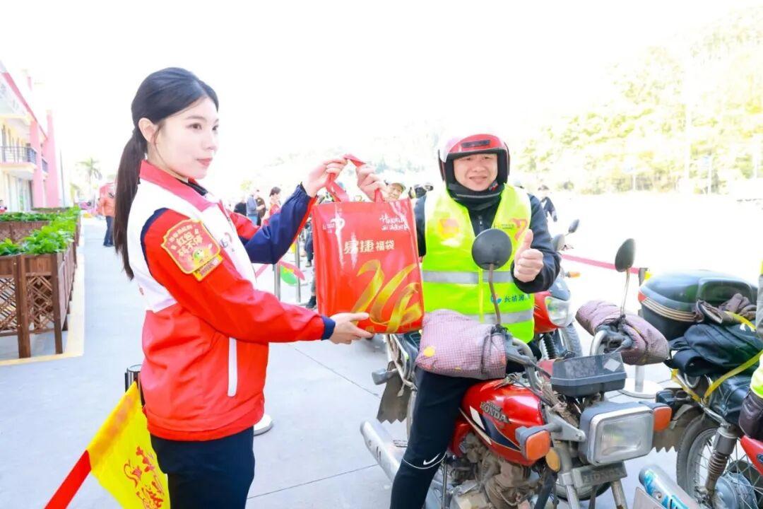 在廣東地區,中國石化設立100座“情暖驛站”,爲在粵務工摩騎人員提供1000份“免費加油包”,包括一次免費加滿油箱服務,以及由易捷、長城潤滑油、太平財險等企業贊助的福袋(含食品、飲料、意外險)和反光背心、騎行雨衣、保溫杯組成的“溫暖三件套”。廣東郵政速遞物流同步提供1000份20公斤以內年貨包裹免費郵寄服務,助力返鄉行李“輕裝上路”。