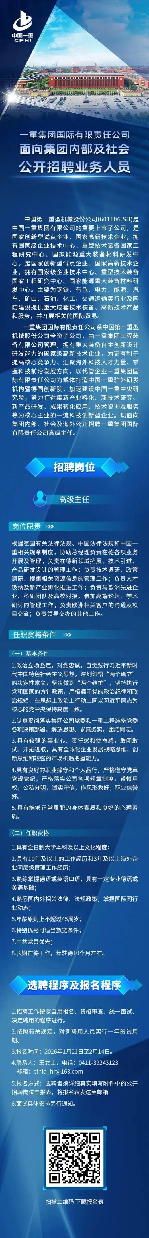 【社招】一重集團國際有限責任公司面向集團內部及社會公開招聘業務人員