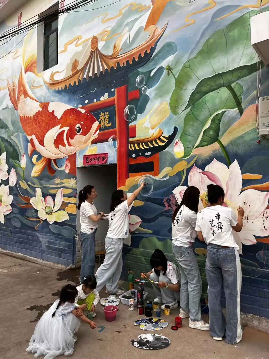 從3個學生的教室,到超過400平方米的網紅牆繪;從湖南的村落到貴州的山鄉,美在哪裏缺席,團隊就出現在哪裏。