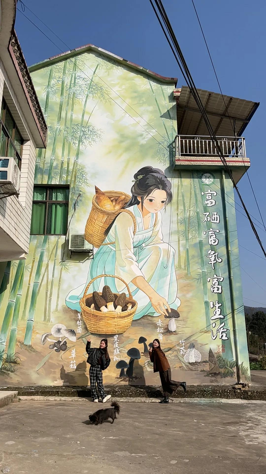 最初,她們只是隨手在村中的斑駁牆面塗抹,並沒有明確的主題和程序。直到2022年,劉燦的老友,桃江縣村播聯盟婦聯副主席楊瓊帶着大夥兒,開始正兒八經搞起了主題牆繪創作。
