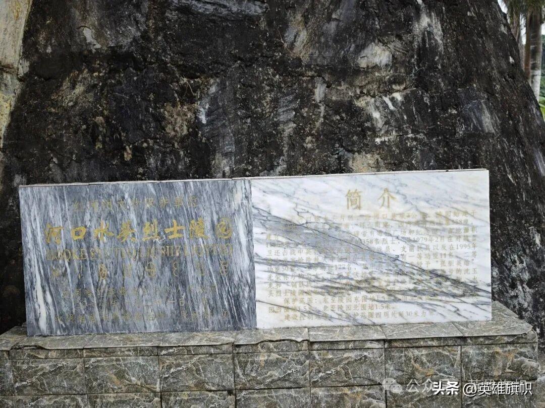 位於河口鎮水頭片區,距河口縣城3公里。陵園始建於1979年4月,座東北向西南,環山而建,園內共有烈士墓358座,建有英雄紀念碑、紀念碑亭、瞻仰臺、瞻仰廣場和紀念館,佔地面積14988平方米。陵園內安葬的358名烈士,是1979年2月在對越自衛還擊戰中英勇犧牲的解放軍指戰員、支前民兵以及在1995年特大洪災搶險救災中犧牲的武警戰士。有一等功臣11名,二等功臣50名,三等功臣177名,其中有中央軍委授予“孤膽英雄”光榮稱號的巖龍、昆明軍區授予“支前民兵英雄”稱號的沈玉龍和“鋼鐵戰士”稱號的麥賢達等革命烈士安葬在這裏。水頭烈士陵園是緬懷革命先烈,進行愛國主義和革命英雄主義教育的基地。