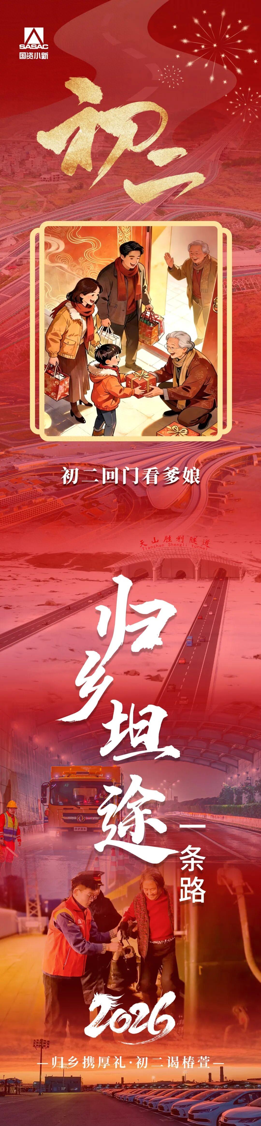 年味兒,是守歲時明亮的燈火,是電話那頭傳來的拜年聲,是千里歸家路上的期待,更是家人團圓的美好……這些延續至今的年俗,共同構成了我們關於新年的記憶。這個春節,小新推出特別策劃《企畫中國年》,從除夕到初七,用專題海報和系列美圖,帶大家一起走進“老年俗”,品味中央企業尖端科技、現代產業、民生服務加持下的“新年味兒”。今天,小新爲您帶來第三篇《歸鄉坦途“一條路”》,看這條路如何穿越山海,串聯萬家燈火,鋪就最溫暖的那一寸歸途。