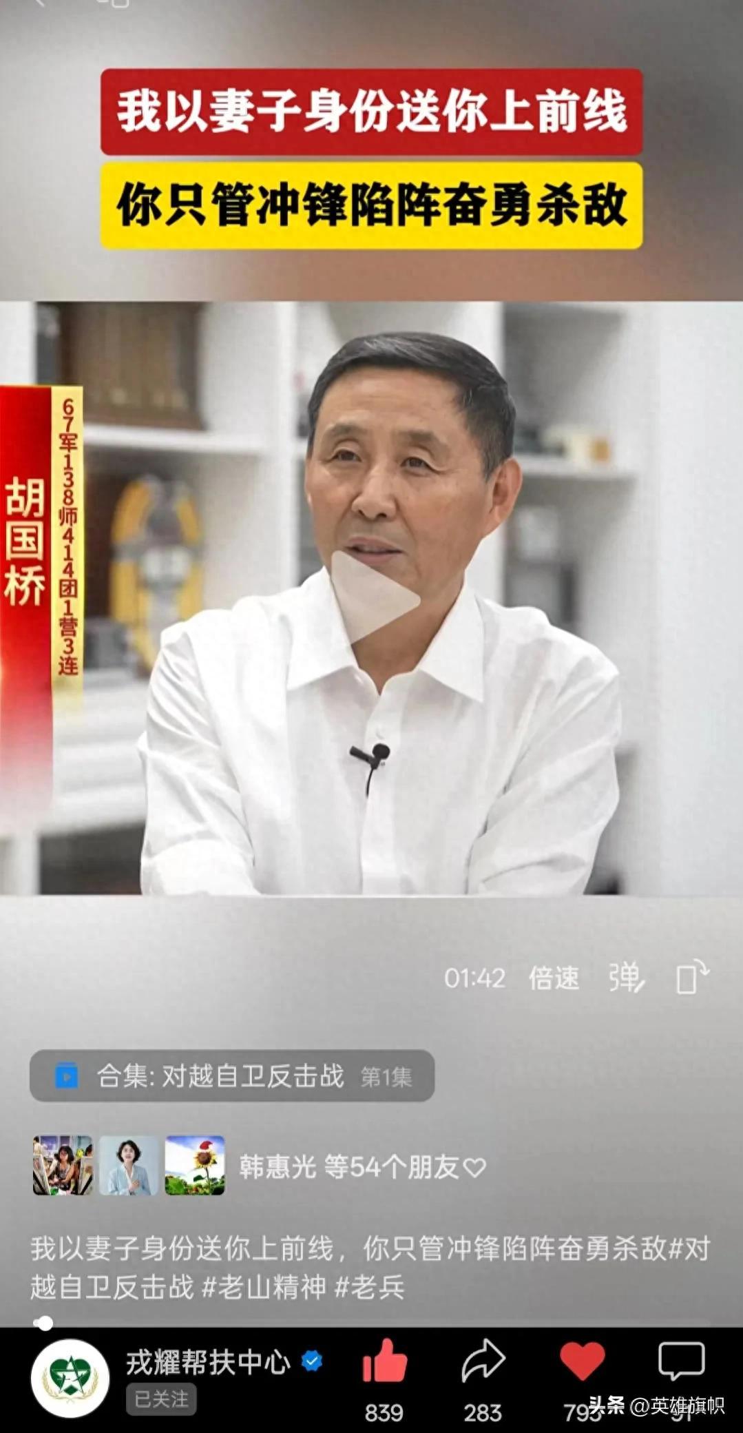 近日,“戎耀幫扶中心”視頻號連續發佈了參戰老兵胡國橋的口述歷史系列視頻,引起朋友們的廣泛關注。經原創作者同意,從本期開始,我們陸續轉載相關視頻並附感言。