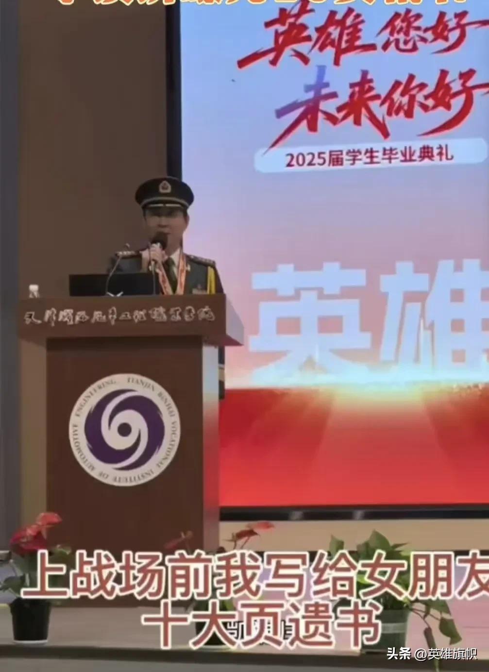 2025年6月,在天津濱海汽車工程職業學院2025屆畢業典禮上,學院特聘教授、一等戰功榮立者胡國橋大校,以一堂震撼心靈的紅色思政課,爲全體畢業生上了畢業前最後一課。