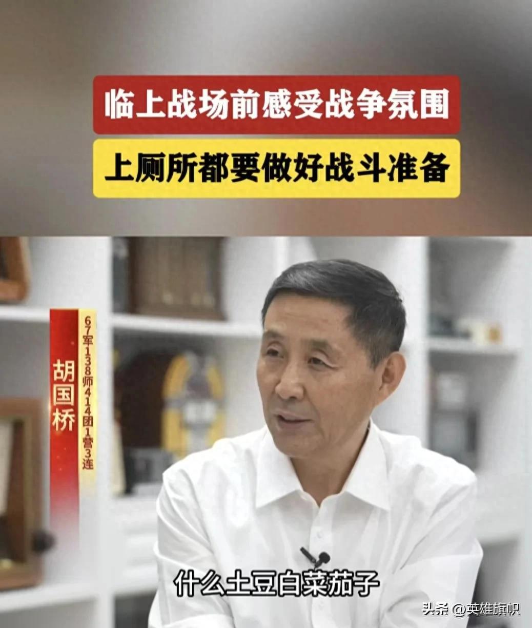 胡國橋:下了車,然後我們在天保農場還喫了頓飯。我印象很深,大鍋飯,土豆、白菜、茄子燉一大鍋。沒想到那是我上陣地之前最後一頓熱菜熱飯,後來上陣地就再也沒機會喫這樣的飯了。給我印象深的還有就是戰爭氣氛已經非常濃,房倒屋塌呀,到處都是彈痕,殘垣斷壁,民房基本上都被毀掉了,牆面到處都斑斑點點的彈痕,廁所裏隨手擺的都是手榴彈啊。當時我就非常驚奇,我說這廁所裏都擺着手雷?才知道,那就是到了戰區,隨時都要做好準備,拉屎都要做好戰鬥的準備,這手榴彈都到處擺的都是。在天保農場,負責給我們帶路的軍工告訴我們,說你們把東西都扔掉,隨身只帶背心、褲頭,背個小挎包,別的根本就帶不了。所有的這些身外之物全都扔到那邊,後來這些東西全都沒了。