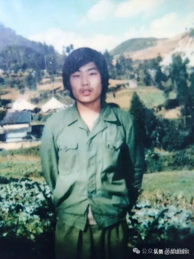 上圖:當年曾將胡國橋撲倒在地的17歲小戰士高峯在戰區留影