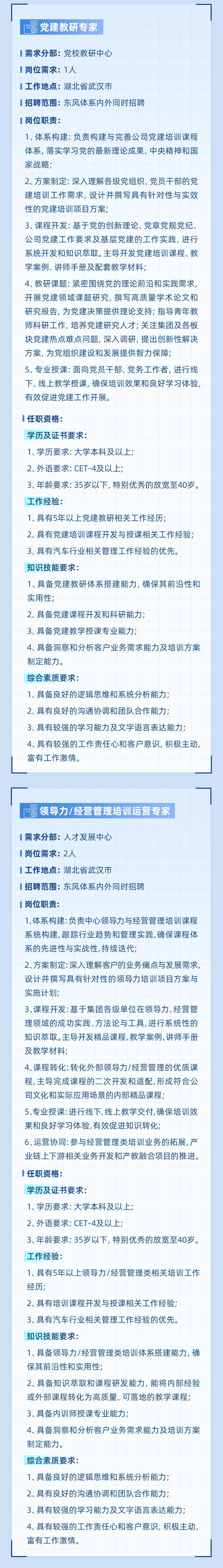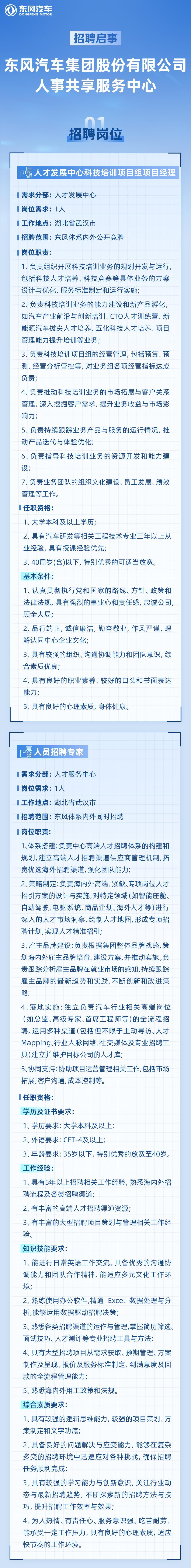 【社招】東風汽車集團股份有限公司人事共享服務中心招聘