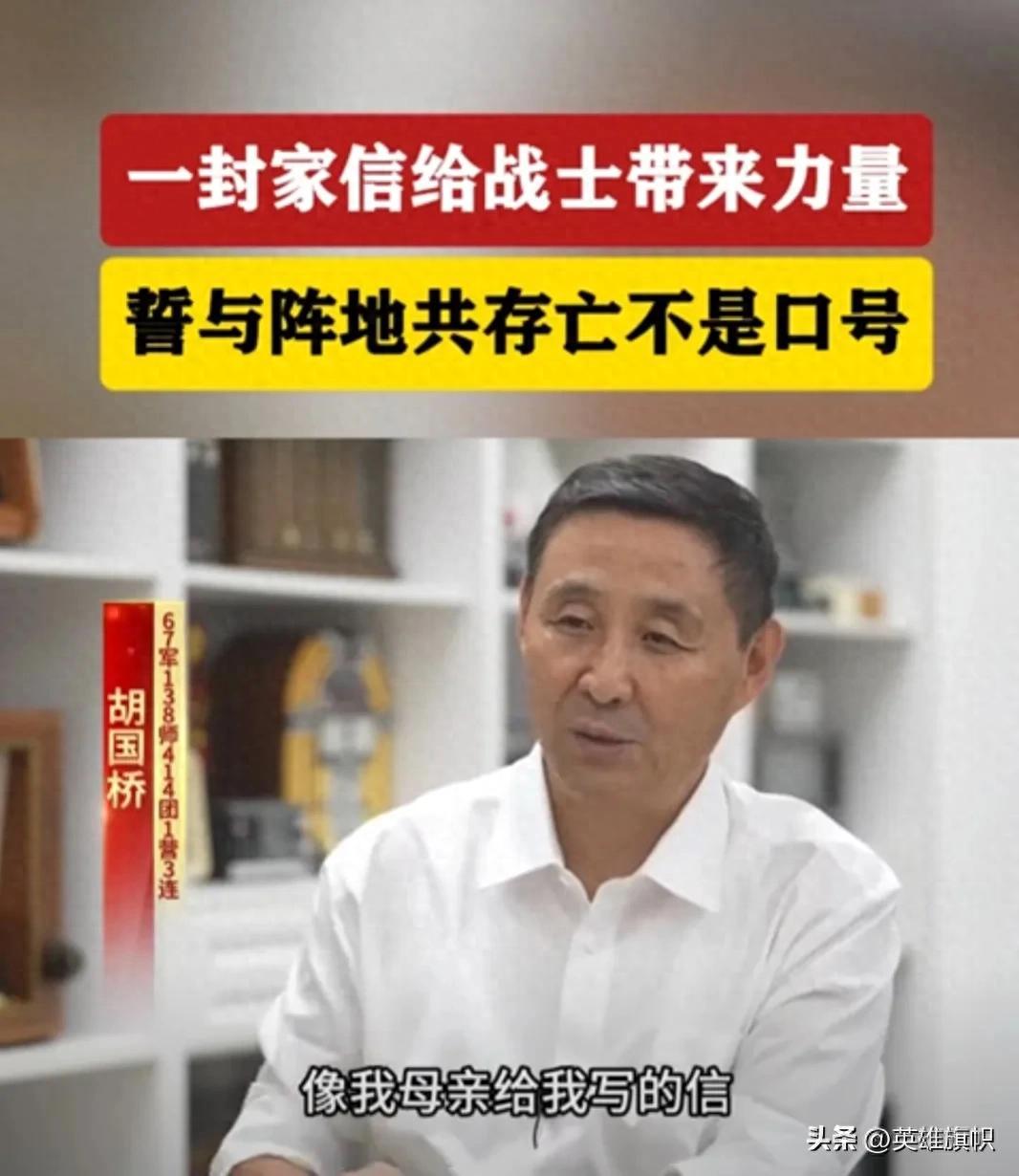 胡國橋:我們最歡迎的實際上除了喫的、喝的和彈藥之外,最盼望的就是信。像我母親給我寫的信,我還沒收到,(剛到陣地)我們的指導員就打開了,然後用電臺告訴我說,國橋,你媽來信了,寫的非常好啊!我已經讓文書抄寫了多份,發到了各個哨位。說,這封信應該是寫給我們所有在前線打仗的戰士的。等我下陣地之後,這封信被中國革命博物館收藏了。前年(2022年)天安門廣場國家博物館搞了一個特殊的展覽,叫“人格的力量,共產黨人的家國情懷”,展覽的就是建黨以來那些老一輩的革命家、老共產黨人的當年的手稿手記和信件等(原始)文物。突然有一天,有一個朋友給我轉來了北京日報的一個微信,說,你趕緊去看一看,國家博物館展出了你媽媽那封信。時隔將近40 年,我媽媽這封信在國家博物館展出了!我就到了天安門廣場,趕緊去看一看。媽媽那封信放在那個展櫃裏面,擺的整整齊齊的。當時我也是熱淚盈眶啊!媽媽當年給我的鼓勵,我覺得幾十年了,再讀來仍然給我一種力量。她其中說:“我相信我的兒子在哪裏都會發出光和熱的,都會做一名令祖國和我們驕傲的兒子!”這對我一直都是一個特別深的一種情懷,一種鼓勵。在前線像這種鼓勵,這種信件給我們帶來了殺敵立功的一種決心。後來爲什麼我說我只要有一口氣,我就要跟戰士們戰鬥在一起啊,誓與陣地共存亡,那個時候可不是口號了。而且我還有個想法,如果我在陣地上被打殘了,打死了,我肯定會成爲英雄。
