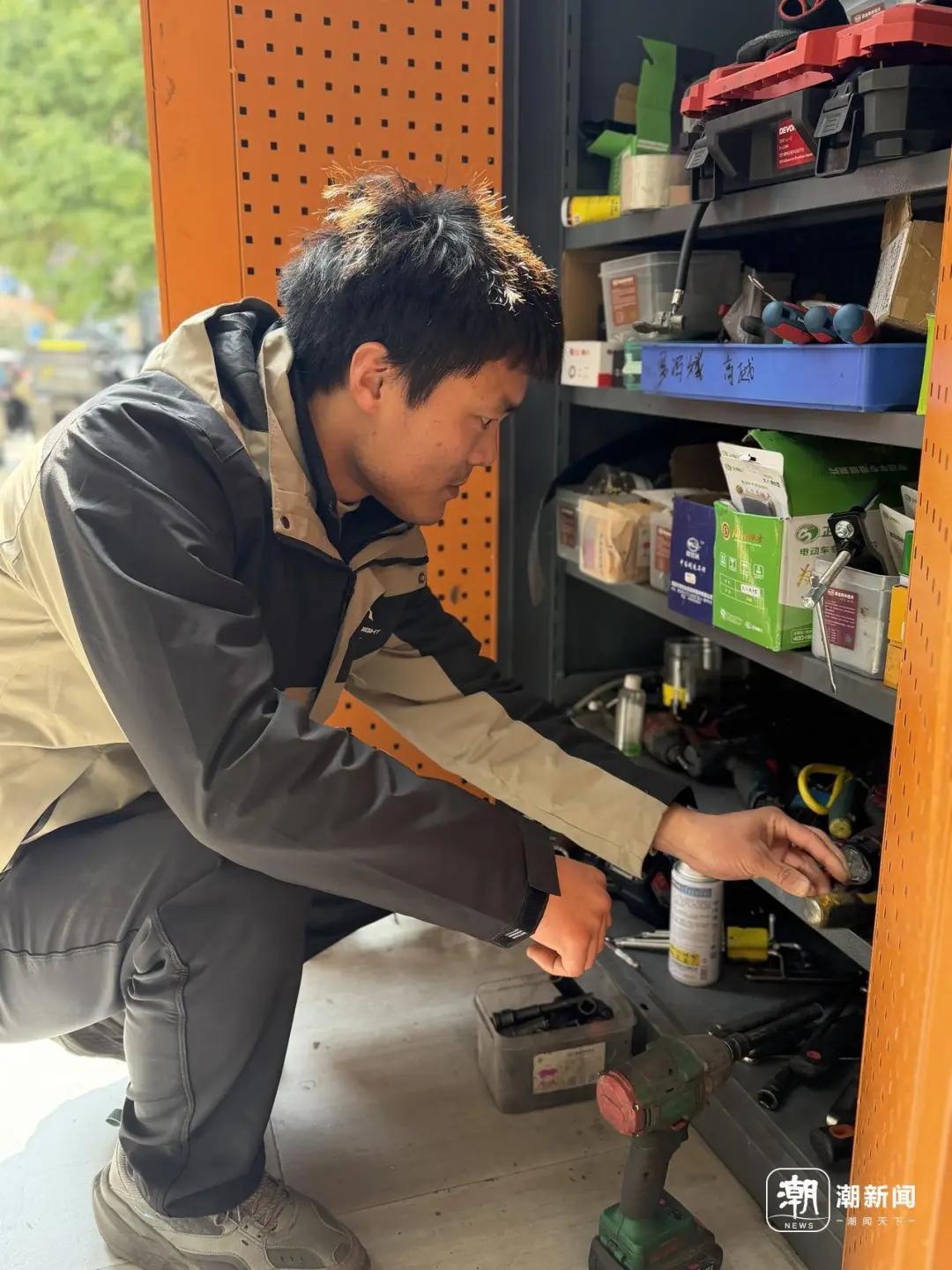 所以他後續轉行開了一家專門針對外賣小哥的電動車修理小店,希望能用手藝給外賣小哥保駕護航。正因自己曾經濟窘迫,所以他想給奔波的外賣小哥便宜實惠的價格,“淋過雨所以想給他人撐傘”。