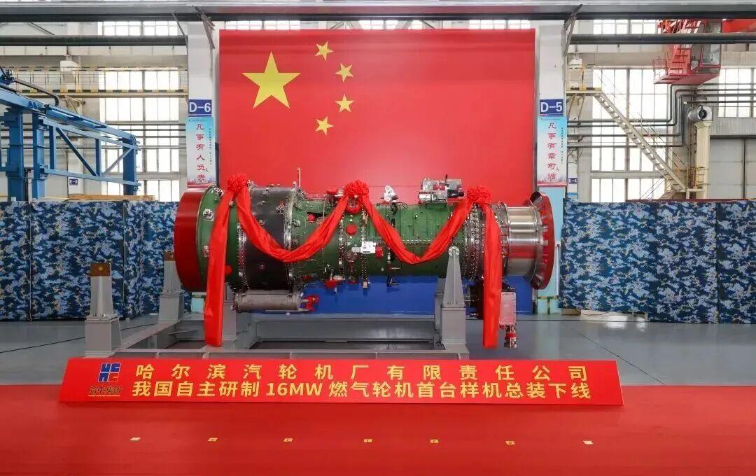 哈電集團自主研製的國內首臺16兆瓦燃氣輪機樣機(HGT16)成功總裝下線並滿負荷試車成功