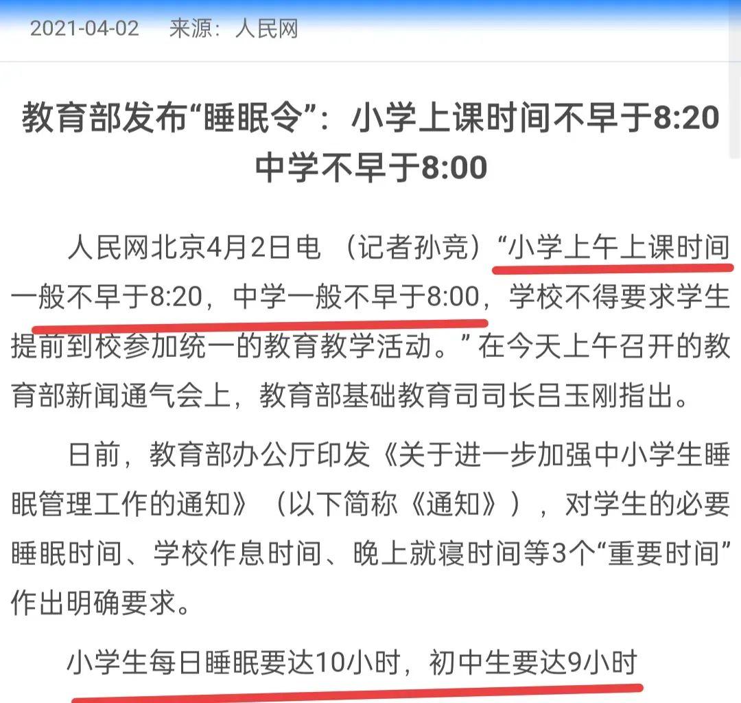 其實早在2021年的時候,教育部就發佈過“睡眠令”。