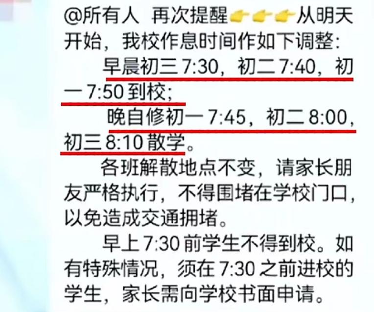 他們家孩子上初中,早上6點多就要到校,晚上將近9點才能放學,回來之後還要喫飯、洗漱,還有些作業得完成,基本上不到12點沒得睡。