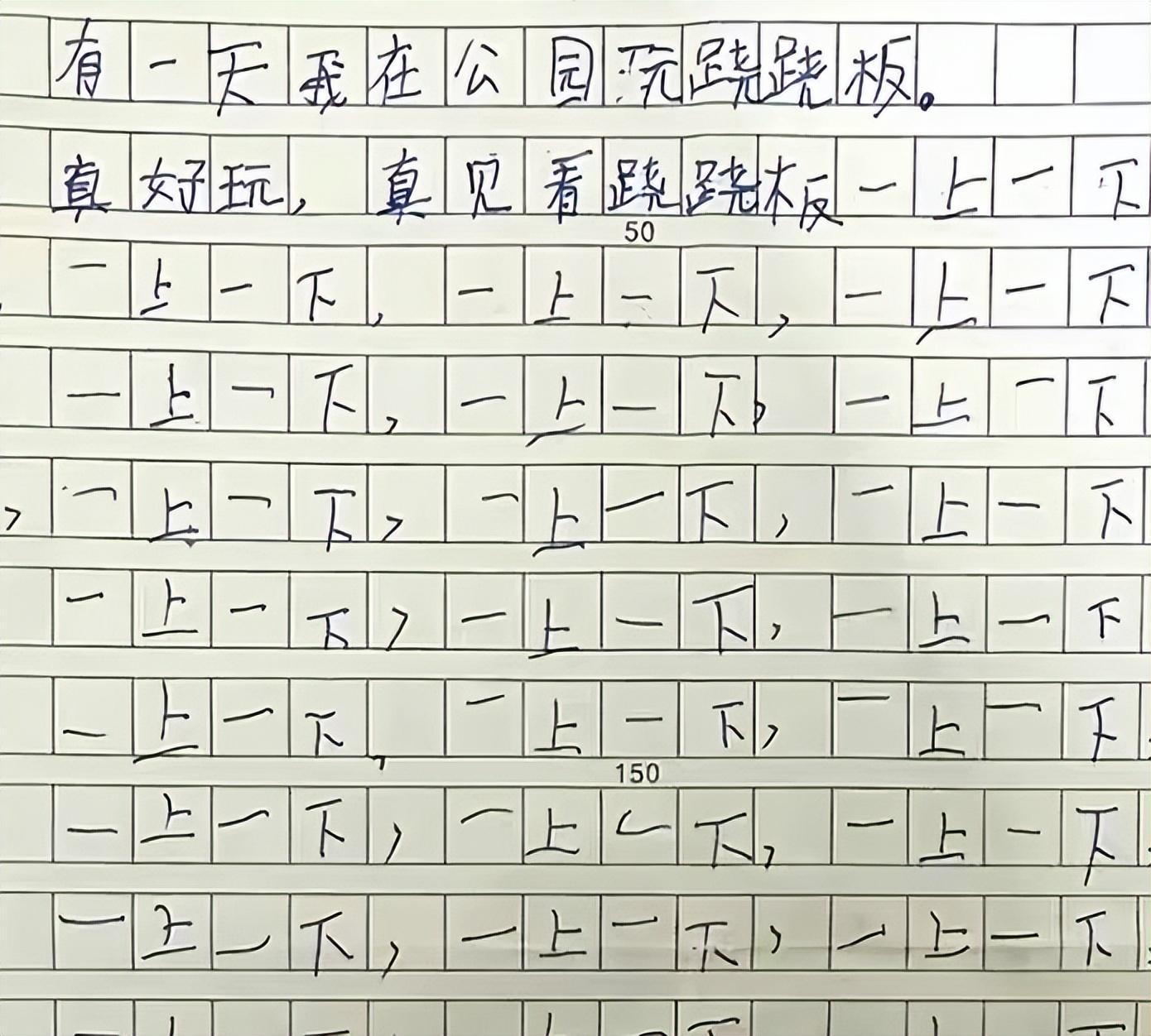 於是,這個小學生就玩蹺蹺板,一直“一上一下”,一直到字數滿了,才停下。