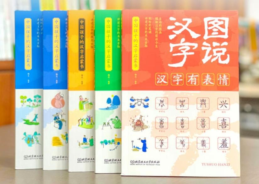 一套書,一共有5本,375個漢字,進行了分門別類,包括《漢字有畫面》《漢字有故事》《漢字有表情》《漢字有生命》《漢字會說話》。