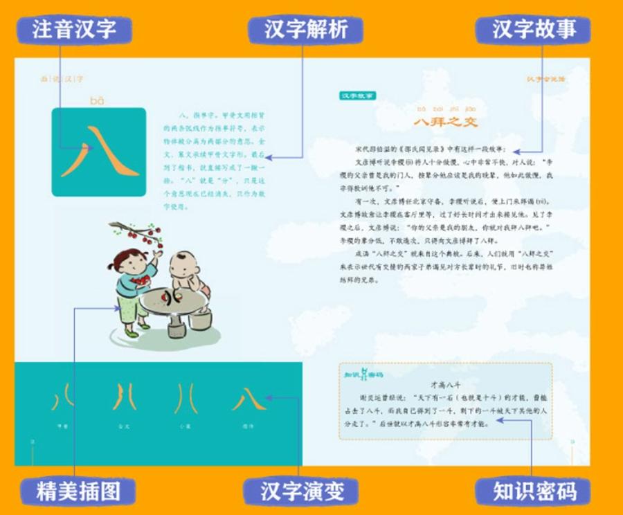這套書,不僅僅可以作爲3-6歲孩子的漢字啓蒙書,也能作爲小學生的漢字興趣書,更可以成爲我們書櫃中經典的漢字收藏書!