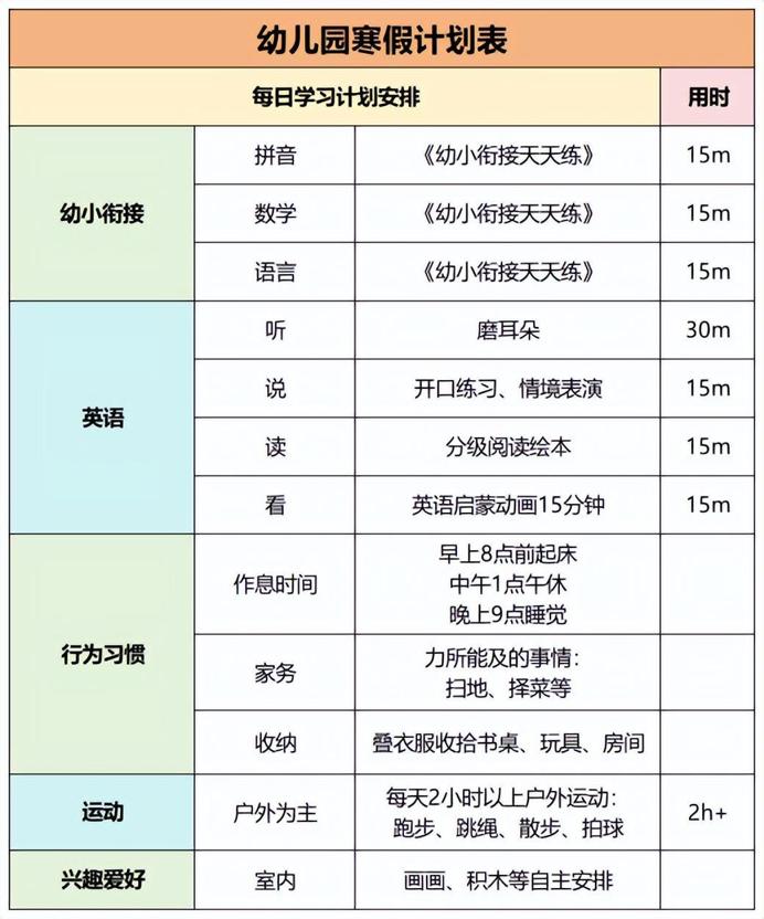 幼兒園大班寒假做什麼?不要擺爛,這份計劃錶帶孩子“彎道超車”