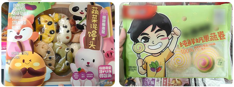 卡通果蔬饅頭通常造型可愛,有小動物的,也有甜甜圈的,五顏六色,對孩子們格外有吸引力。