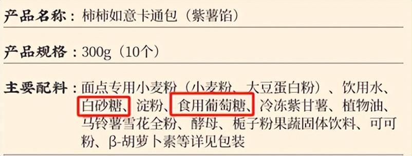 “甜味包”的配料表裏,大部分會有白砂糖,有的還額外加一些葡萄糖