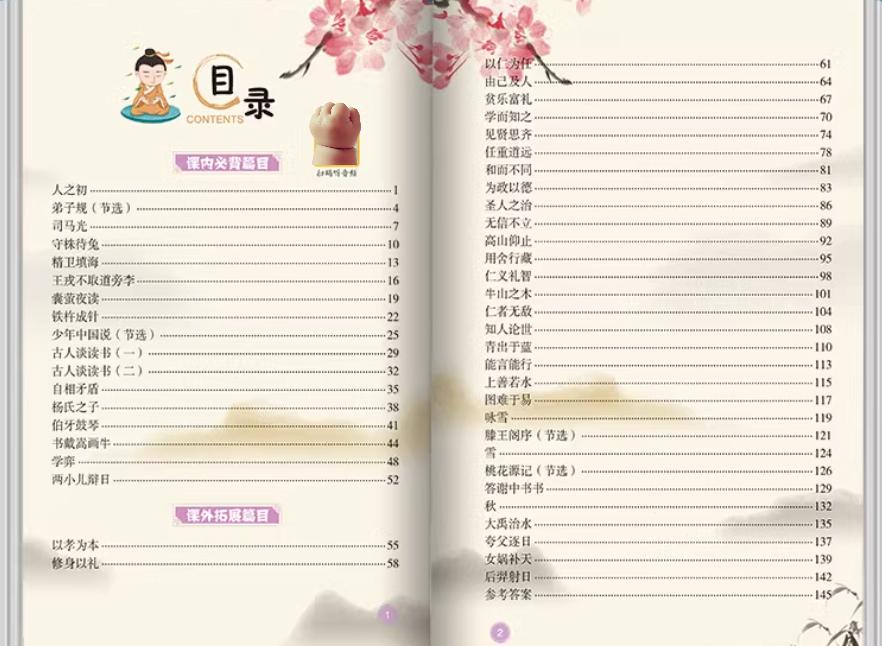 這套書分爲上下兩冊,收集了小學課內和課外必讀必背的文言文篇目。