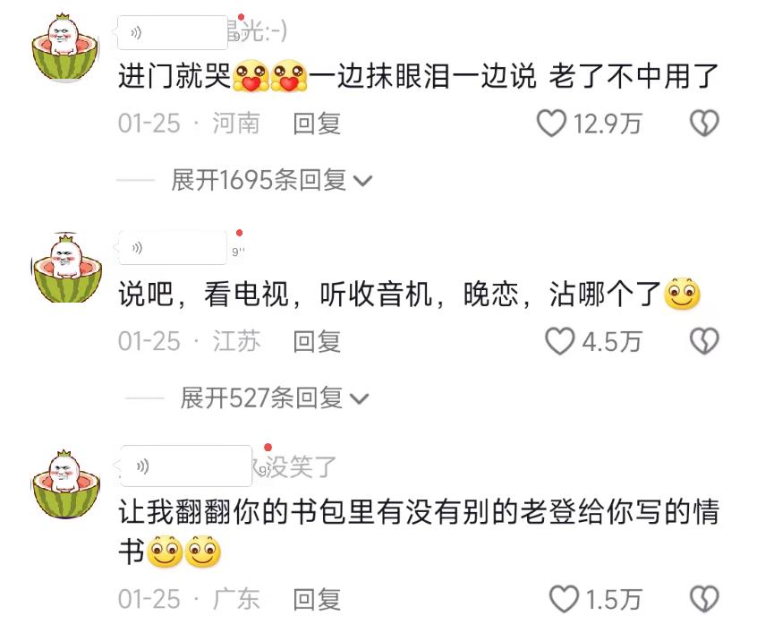 還“書包裏有沒有別的老登給你寫的情書”,隔着屏幕都能感受到“怕老奶奶被拐走”的不開心了。