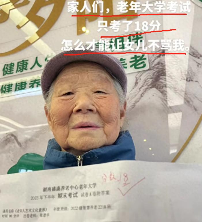 前些時候,有一位老年大學的老奶奶火了,因爲,她在去年下半年的期末考試中,只得了18分。