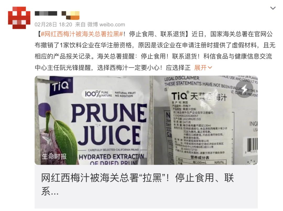 #網紅西梅汁被海關總署拉黑!