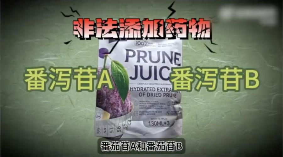 番瀉苷是以前比較常用的瀉藥——番瀉葉的有效成分,是不應該在西梅汁這類食品中出現的,企業有違規添加、造假的嫌疑。