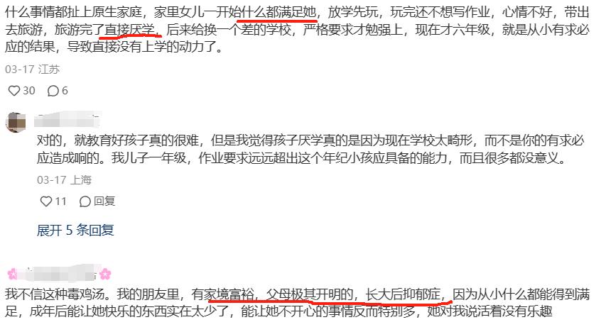 因爲什麼都滿足,然後孩子長大了,反而不快樂,甚至抑鬱。