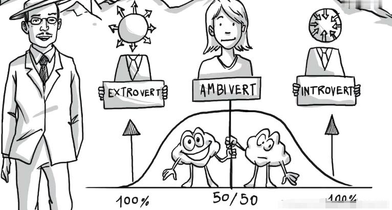 但是,榮格也認爲:沒有人是100%的外向型,也沒有人是100%的內向型。