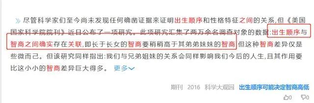 《美國國家科學院院刊》公佈了一項研究,他們對2萬餘名對象進行了研究,然後發現出生順序和智商之間,確實存在一定的關聯,老大智商大於弟弟妹妹的智商的概率,要更高些。