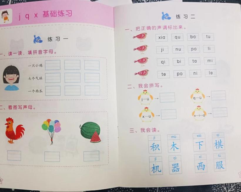 練習冊共12冊,分爲拼音(2本)、偏旁部首(2本)、漢字(2本)、語言(2本)、數學(4本)。