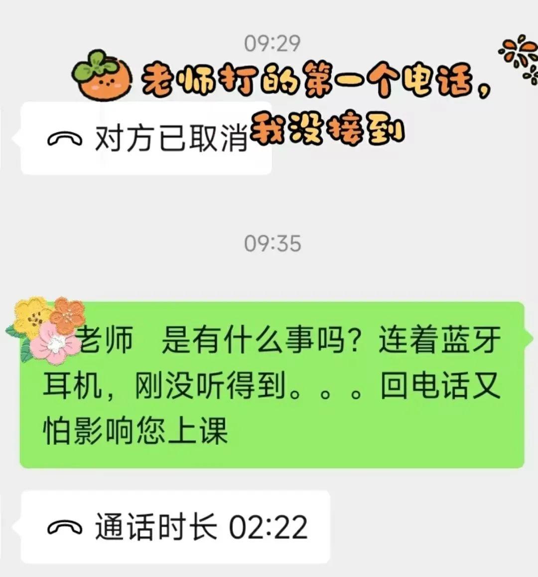 前幾天早上收到一年級雙胞胎班主任的語音電話,當時正帶着藍牙耳機邊看劇邊剪視頻呢,沒注意手機的提示,等發現的時候,電話已經掛斷了。
