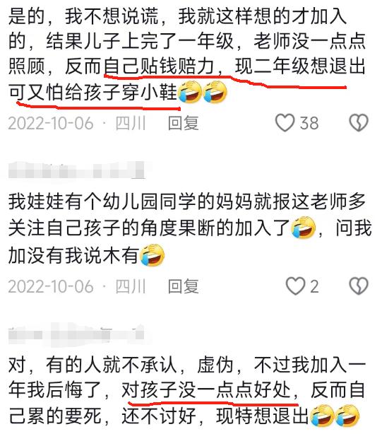 但實際上,“後悔加入”的遠要比“慶幸加入”的家長要多。
