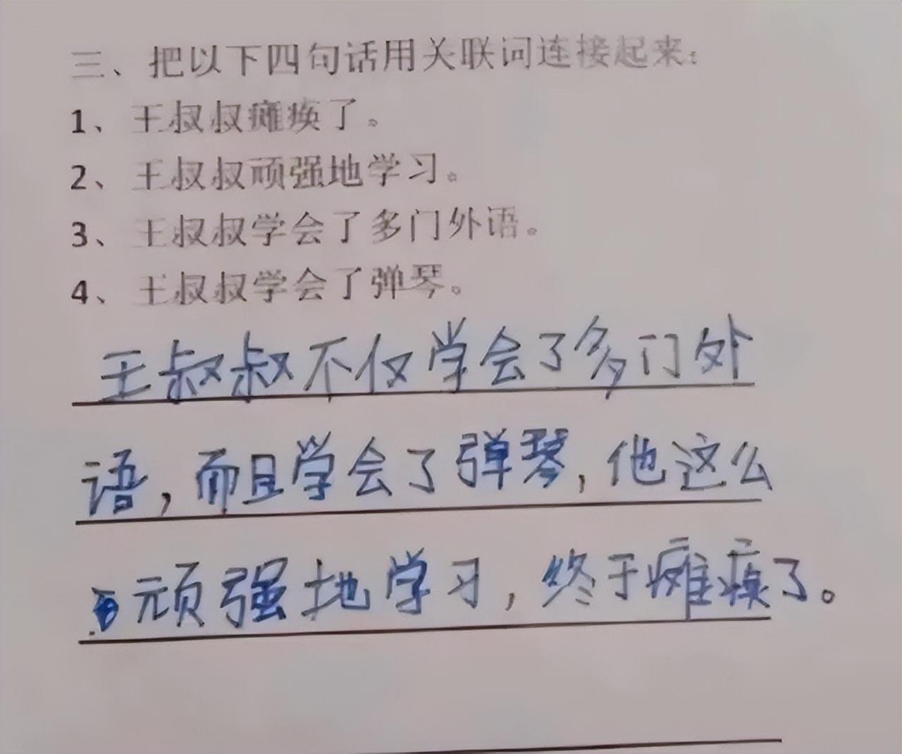 但是,好傢伙,孩子直接將“勵志”主題改成了“學習毀滅論”:王叔叔會這個會那樣,頑強地學習,終於癱瘓了!