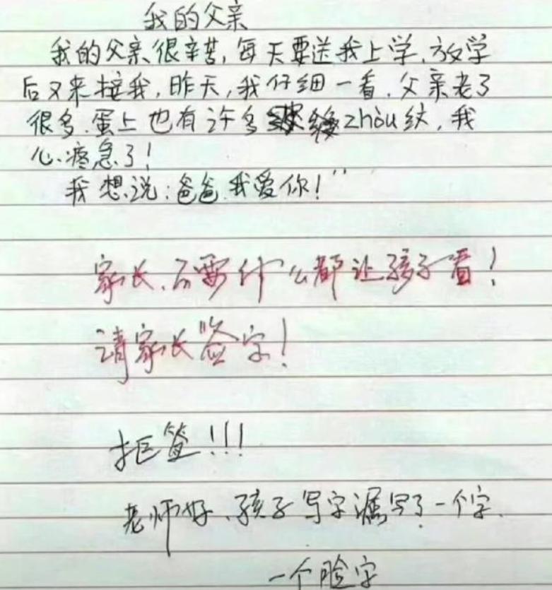 孩子啊,寫漏了一個字,那意思差別可就大了!