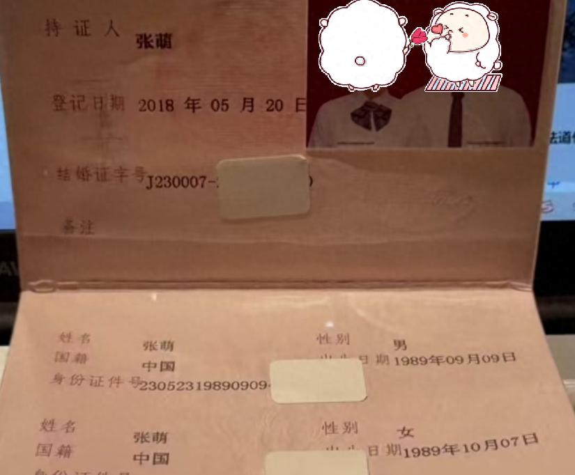 再確定兩個名字都是“張萌”之後,登記工作人員也向夫妻投來疑惑的目光。