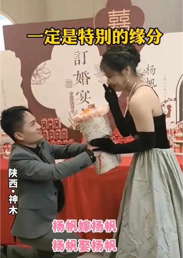 之前還看過一場訂婚宴,小兩口的名字,都叫“楊帆”。