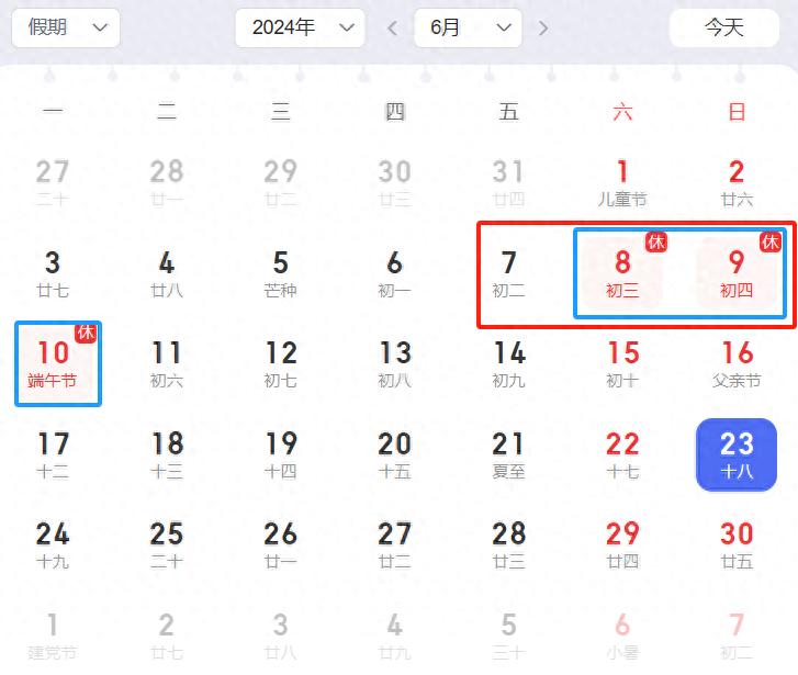 而今年的端午放假時間,則是6月的8、9、10號。