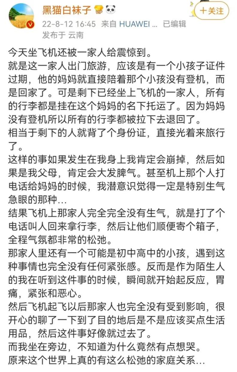 不過就是一個孩子證件過期了,沒能登機,媽媽陪着孩子沒登機,但是所有託運的行李都在媽媽名下,媽媽不登機,行李自然也就被退回了。